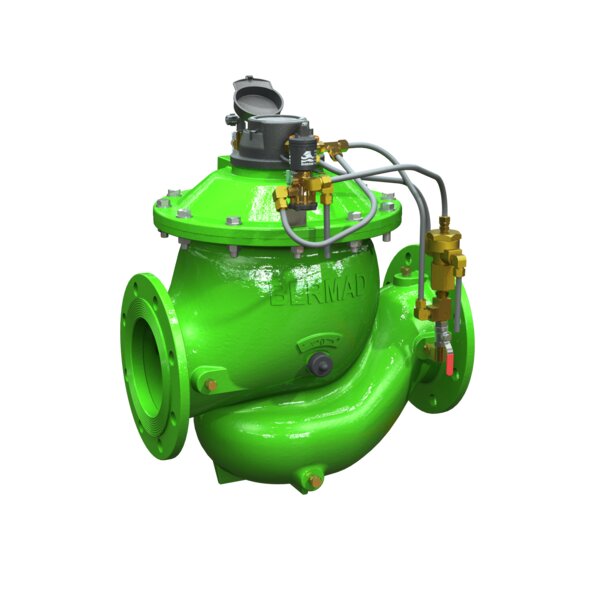 The Solenoid Controlled Valve is a hydraulically operated, diaphragm actuated control valve that opens and shuts in response to an electric signal.